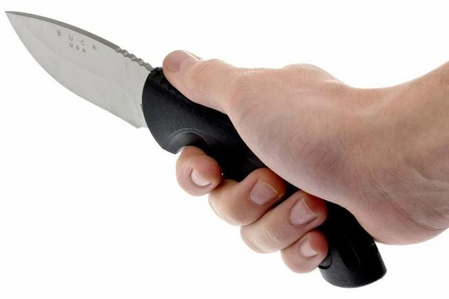 The Buck Omni Hunter 12PT is and allround fixed hunting knife. The ergonomically shaped handle looks fantastic and offer optimal grip in all circumstances. The dimensions of the blade, specifically the thickness, ensure a very solid feel of the knife.