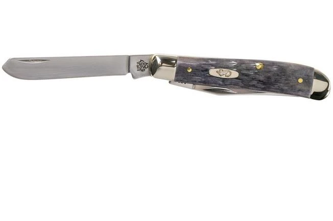 The Case Mini Trapper is a traditional pocket knife with a classic Trapper shape. This is a pattern that has its origins amongst hunters and poachers. This specific version has two blades: one classic clippoint and one traditional speypoint. Both blades can be used to gut caught game. When opened they are kept in place by a slipjoint. It is also enhanced with a so-called half-stop. This means that it will stop half-way through closing to make sure you can get your fingers out of the way.