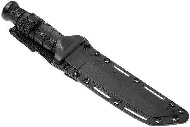 The Cold Steel 39LSFCT Leatherneck Tanto is a fixed knife with a tactical appearance. The blade is made from German D2 tool steel. This is a non-stainless type of steel with exceptional qualities in terms of sharpness retention and toughness. To protect the blade it is enhanced with a black coating. The handle of this knife is made from Kray-Ex and offers you a lot of grip. To make sure you don’t slip and end up on the blade, the knife is equipped with a sturdy steel finger guard.
