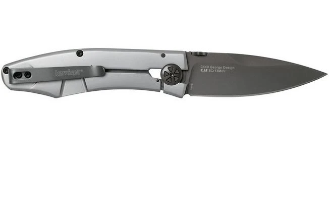 The Kershaw Innuendo 3440 is a sleek EDC pocket knife, designed by Les George. He became inspired by the lines of an exotic sports car. The custom pivot might therefore also remind you of an alloy rim. The handle of the Innuendo is quite thin which means it will hardly stand out in your pocket. At the same time it is fairly high to make sure you can easily wrap your fingers around it.