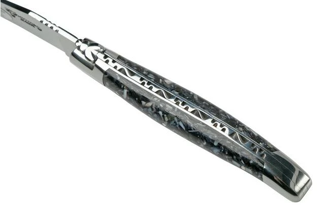 The Laguiole en Aubrac Mussel is a modern version of the classic Laguiole knife. The knife has a special handle made from ground mussel shells and a high-gloss polished bolster and edge. This pocket knife is handcrafted to guarantee a refined finish.