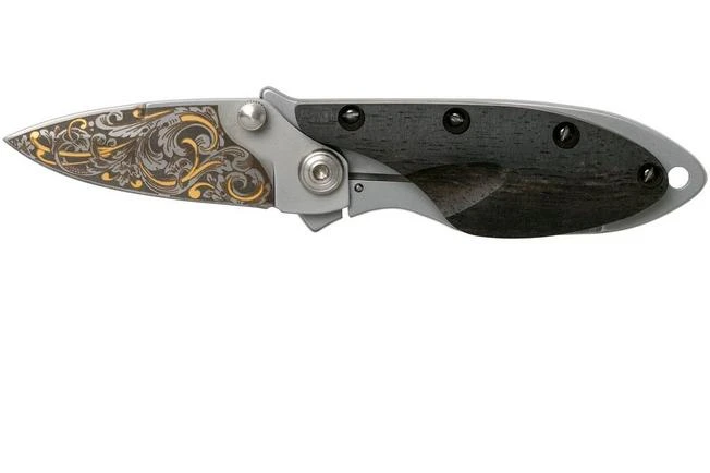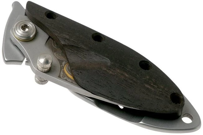 The Maserin Onefold is a remarkable and small pocket knife with a very interesting handle. It is namely comprised of one side of stunning ebony wood and one side of steel for the lock. Because of this combination the knife weighs next to nothing. Remarkable about this knife is that the blade is enhanced with 24-carat gold!