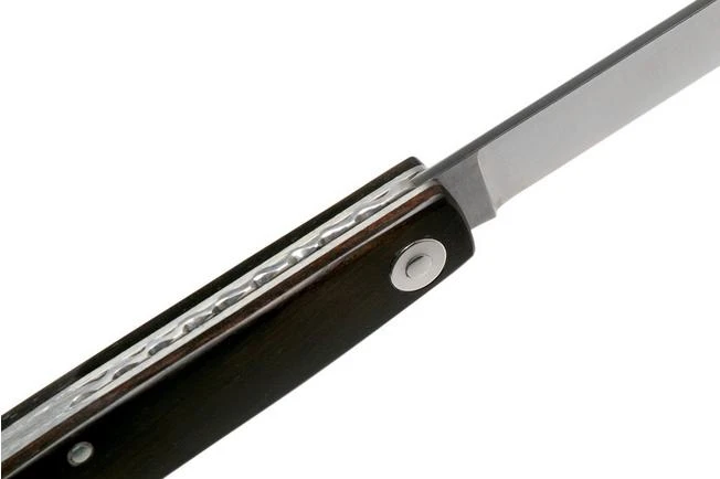 The Ohta Light Folder OLF was designed and made by hand by Hiroaki Ohta. A nice and fine pocket knife. Stylish and light-weight. You open the knife with two hands and a slipjoint provides resistance when you close it. Because of this combination you can legally carry the Ohta Light Folder in many places in Europe.