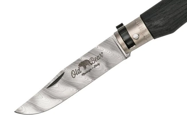 The Old Bear Classical Black Damascus M is a cool pocket knife and a special edition of the Classical from Old Bear. You easily open the blade with the nail nick. You do so with two hands. As such the knife can legally be carried almost everywhere in Europe. You lock the knife both when open and closed. It is the result of a Lupo-lock mechanism, a ring lock we have seen on similar knife brands but can be controlled with one hand.