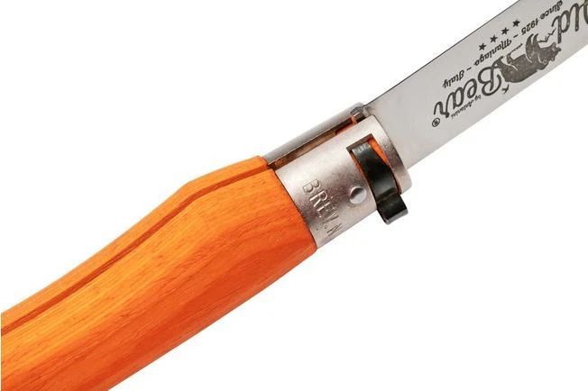 The Old Bear Classical Orange XL is a classic pocket knife from Italy. You easily open the blade with the nail nick. You do so with two hands. As such the knife can legally be carried almost everywhere in Europe. You lock the knife both when open and closed. It is the result of a Lupo-lock mechanism, a ring lock we have seen on similar knife brands but can be controlled with one hand.
