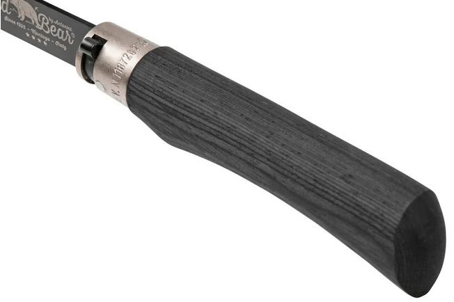 The Old Bear Classical Total Black XL is a classic pocket knife from Italy. You easily open the blade with the nail nick. You do so with two hands. As such the knife can legally be carried almost everywhere in Europe. You lock the knife both when open and closed. It is the result of a Lupo-lock mechanism, a ring lock we have seen on similar knife brands but can be controlled with one hand.