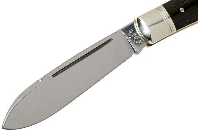 The Robert Klaas 95 mm is a stunning gentleman’s knife. The blade has a vintage spearpoint shaped blade. Very typical for this type of knife is the one-sided swedge on the spine of the tip. Not sharpened, but wonderful as an additional design element. Furthermore, this thin part ensures that the tip is thinner as well and perfect for the detailed jobs.