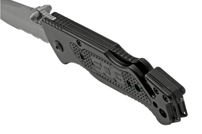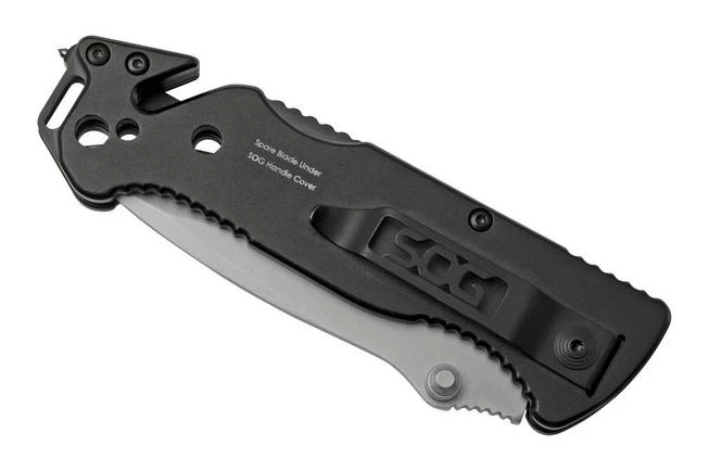 The SOG Escape is a practical EDC pocket knife with many functions. The base of the handle is enhanced with a glass breaker and a cutting hook, perfect for first responders. Because the handle is made from aluminium, the SOG Escape is nice and lightweight for its size. As such you can easily carry it with you on a daily basis. You open the blade via the thumb stud and when opened the blade is locked by a solid backlock.