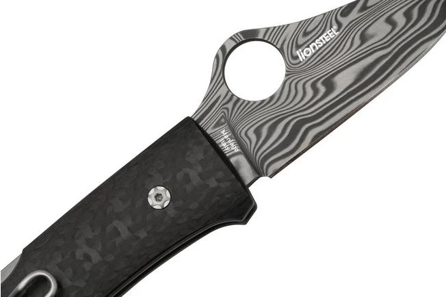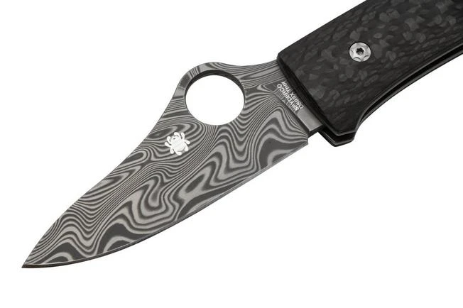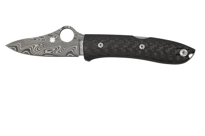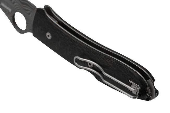 The Spyderco SpyOpera C255CFPD Carbon Fiber, Damasteel, Sprint Run is a limited Sprint Run edition of the Spyderco SpyOpera. This version features a premium Damasteel blade in Thor pattern. The handle is made from stylish carbon fibre. Very neat!